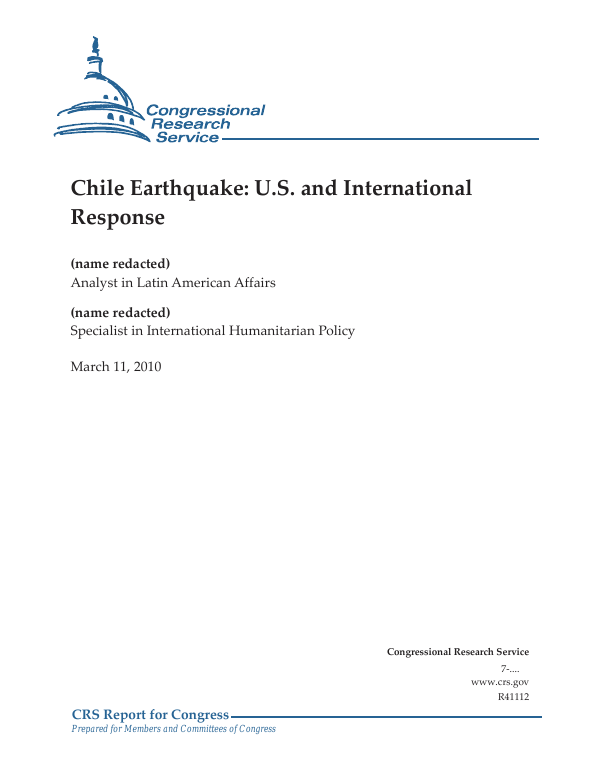 Chile Earthquake U S And International Response Everycrsreport Com